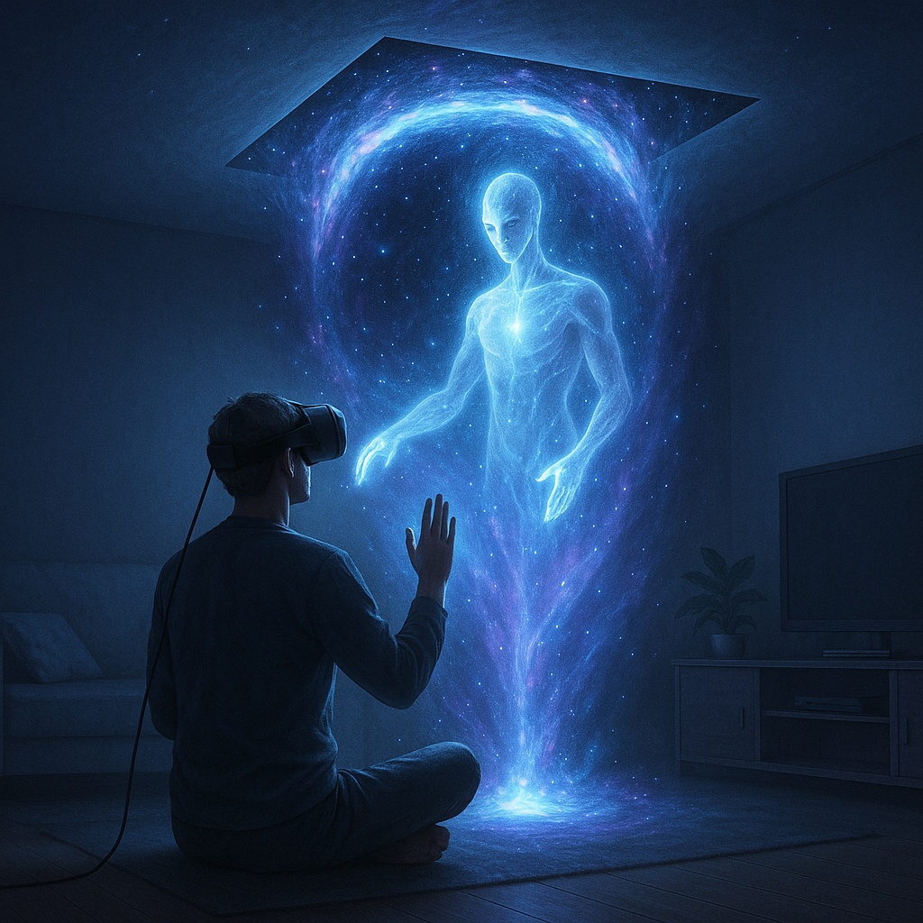 Вы развиваете навык контакта с Высшими Существами, находясь в помещении - например у себя дома. Вы сами открываете космический портал для контакта.
